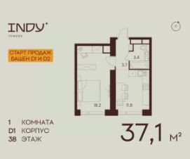 Продается уютная однокомнатная квартира на 38 этаже жилого комплекса Indy Towers. Срок сдачи: 3 кв. 2029 г.