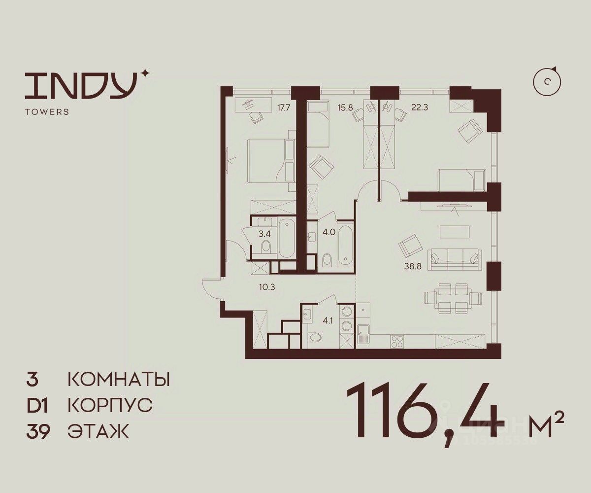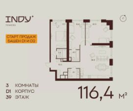 Продается просторная 3-комнатная квартира на 39 этаже жилого комплекса Indy Towers. Срок сдачи: 3 кв. 2029 г.