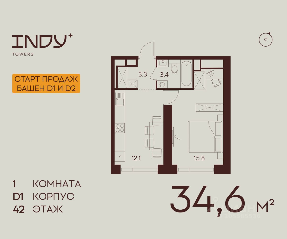 Продажа от застройщика. Продается уютная однокомнатная квартира на 42 этаже жилого комплекса Indy Towers. Срок сдачи: 3 кв. 2029 г. Отделка: Квартиры продаются с отделкой WhiteBox. - Вам не придется заниматься черновыми работами. - Возможность реализовать любой дизайн-проект. Расположение: Комплекс расположен в Хорошевском районе Москвы, на улице Куусенина, в окружении почти 150 гектаров парков для прогулок и активного отдыха. Помимо этого, рядом с комплексом есть: - Детская международная академия тенниса - Ледовый спортивный комплекс ЦСКА - Футбольный стадион "ВЭБ-Арена" - Крупнейший в Европе торовый центр "Авиапарк" - Богатый выбор государственных и частных школ - 8 парков, окружающих комплекс Транспортная доступность: - 3 минут до метро Зорге - 2 минуты пешком до парка Березовая роща - 10 минут на машине до ТТК - 8 минут на машине до ТРЦ Авиапарк Внутренняя инфраструктура Indy Towers: - Кафе и продуктовые магазины - Тайский SPA - Фитнес зал - Комьюнити-зона - Детский клуб Аквилон KIDS - Детский сад Преимущества: - Технология энергоэффективности Termo-S, снижающая теплопотерю домов и позволяющую экономить на электроснабжении - Soundstop - технология дополнительной шумоизоляции на 39 дБ в квартирах с WhiteBox и чистовой отделкой - Система умного дома inHome 3.0 позволит контролировать коммунальные расходы, оплачивать счета и пользоваться услугами, не выходя из умного дома