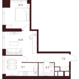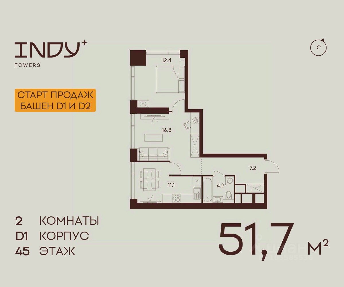 Продается 2-комнатная квартира на 45 этаже жилого комплекса Indy Towers. Срок сдачи: 3 кв. 2029 г.