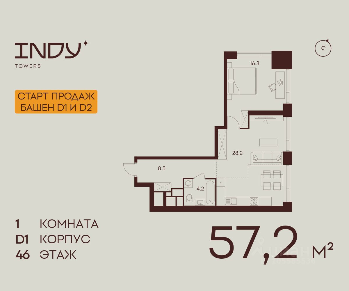 Продажа от застройщика. Продается уютная однокомнатная квартира на 46 этаже жилого комплекса Indy Towers. Срок сдачи: 3 кв. 2029 г. Отделка: Квартиры продаются с отделкой WhiteBox. - Вам не придется заниматься черновыми работами. - Возможность реализовать любой дизайн-проект. Расположение: Комплекс расположен в Хорошевском районе Москвы, на улице Куусенина, в окружении почти 150 гектаров парков для прогулок и активного отдыха. Помимо этого, рядом с комплексом есть: - Детская международная академия тенниса - Ледовый спортивный комплекс ЦСКА - Футбольный стадион "ВЭБ-Арена" - Крупнейший в Европе торовый центр "Авиапарк" - Богатый выбор государственных и частных школ - 8 парков, окружающих комплекс Транспортная доступность: - 3 минут до метро Зорге - 2 минуты пешком до парка Березовая роща - 10 минут на машине до ТТК - 8 минут на машине до ТРЦ Авиапарк Внутренняя инфраструктура Indy Towers: - Кафе и продуктовые магазины - Тайский SPA - Фитнес зал - Комьюнити-зона - Детский клуб Аквилон KIDS - Детский сад Преимущества: - Технология энергоэффективности Termo-S, снижающая теплопотерю домов и позволяющую экономить на электроснабжении - Soundstop - технология дополнительной шумоизоляции на 39 дБ в квартирах с WhiteBox и чистовой отделкой - Система умного дома inHome 3.0 позволит контролировать коммунальные расходы, оплачивать счета и пользоваться услугами, не выходя из умного дома