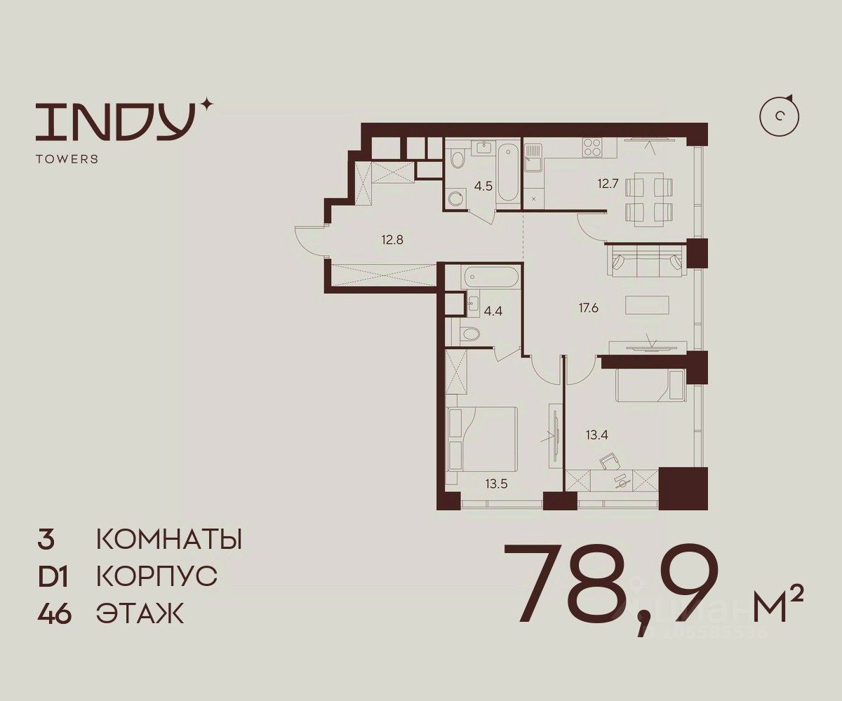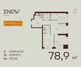 Продается просторная 3-комнатная квартира на 46 этаже жилого комплекса Indy Towers. Срок сдачи: 3 кв. 2029 г.