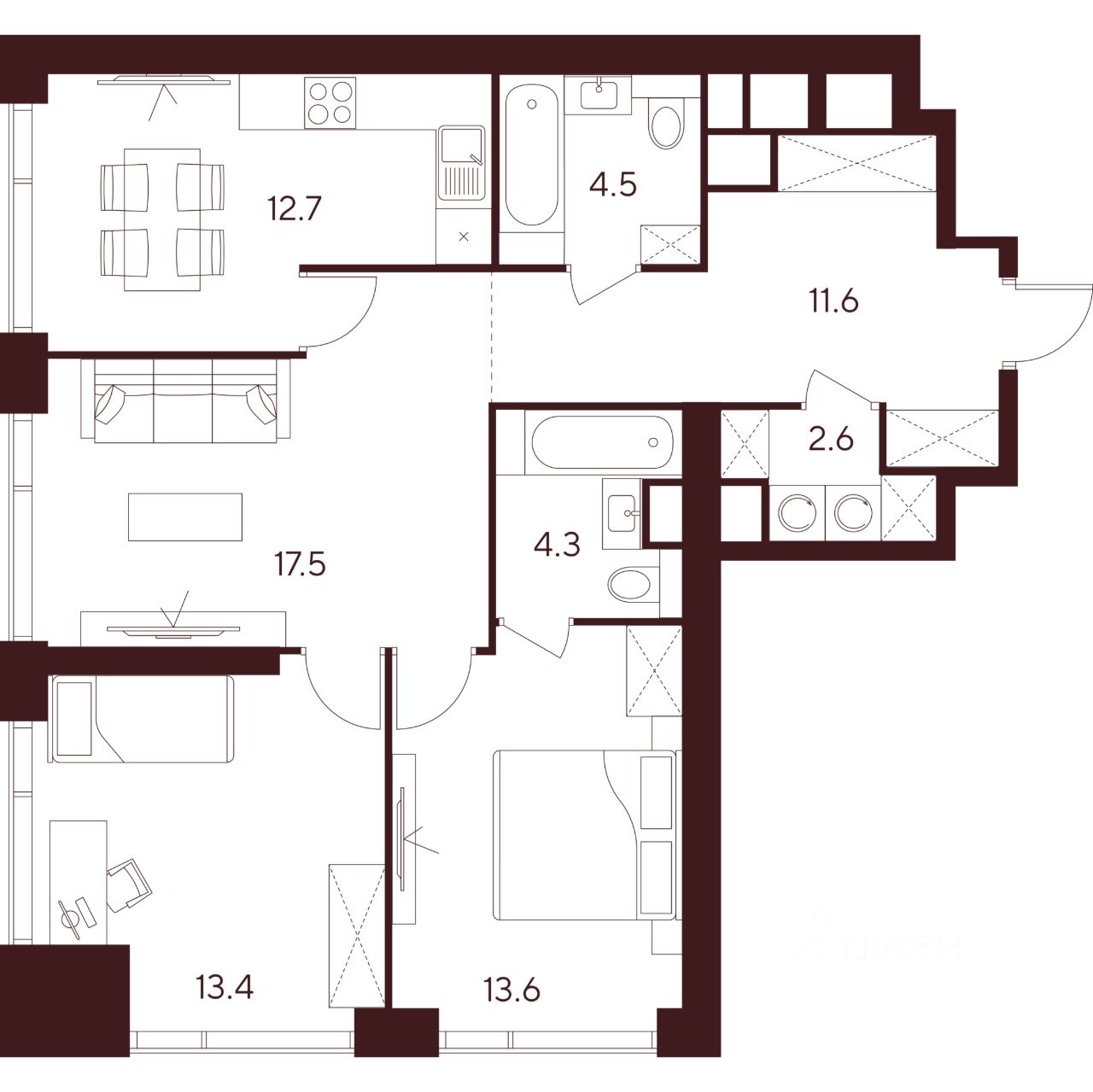 12,7 м²