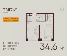 Продается уютная однокомнатная квартира на 47 этаже жилого комплекса Indy Towers. Срок сдачи: 3 кв. 2029 г.