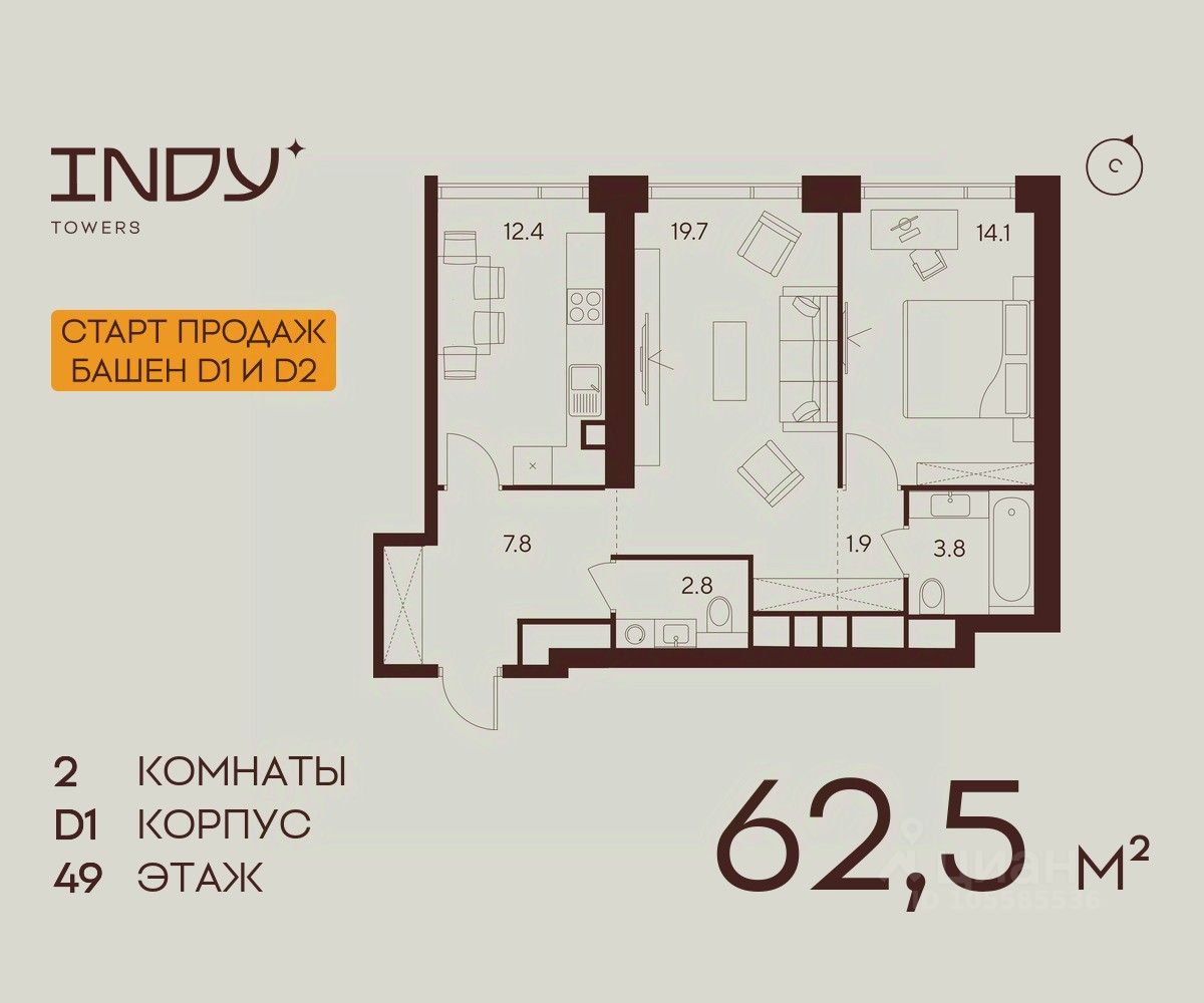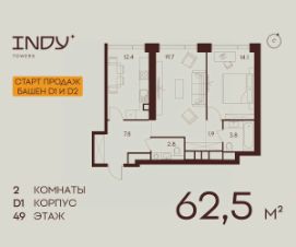 Продажа от застройщика. Продается просторная 2-комнатная квартира на 49 этаже жилого комплекса Indy Towers. Срок сдачи: 3 кв. 2029 г. Расположение: Комплекс расположен в Хорошевском районе Москвы, на улице Куусенина, в окружении почти 150 гектаров парков для прогулок и активного отдыха. Помимо этого, рядом с комплексом есть: - Детская международная академия тенниса - Ледовый спортивный комплекс ЦСКА - Футбольный стадион "ВЭБ-Арена" - Крупнейший в Европе торовый центр "Авиапарк" - Богатый выбор государственных и частных школ - 8 парков, окружающих комплекс Транспортная доступность: - 3 минут до метро Зорге - 2 минуты пешком до парка Березовая роща - 10 минут на машине до ТТК - 8 минут на машине до ТРЦ Авиапарк Внутренняя инфраструктура Indy Towers: - Кафе и продуктовые магазины - Тайский SPA - Фитнес зал - Комьюнити-зона - Детский клуб Аквилон KIDS - Детский сад Преимущества: - Технология энергоэффективности Termo-S, снижающая теплопотерю домов и позволяющую экономить на электроснабжении - Soundstop - технология дополнительной шумоизоляции на 39 дБ в квартирах с WhiteBox и чистовой отделкой - Система умного дома inHome 3.0 позволит контролировать коммунальные расходы, оплачивать счета и пользоваться услугами, не выходя из умного дома