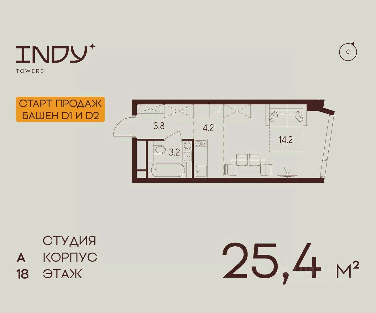 Продажа от застройщика. Продается просторная студия на 18 этаже жилого комплекса Indy Towers. Вид из окон: во двор. Срок сдачи: 4 кв. 2026 г. Отделка: Квартиры продаются с отделкой WhiteBox. - Вам не придется заниматься черновыми работами. - Возможность реализовать любой дизайн-проект. Расположение: Комплекс расположен в Хорошевском районе Москвы, на улице Куусенина, в окружении почти 150 гектаров парков для прогулок и активного отдыха. Помимо этого, рядом с комплексом есть: - Детская международная академия тенниса - Ледовый спортивный комплекс ЦСКА - Футбольный стадион "ВЭБ-Арена" - Крупнейший в Европе торовый центр "Авиапарк" - Богатый выбор государственных и частных школ - 8 парков, окружающих комплекс Транспортная доступность: - 3 минут до метро Зорге - 2 минуты пешком до парка Березовая роща - 10 минут на машине до ТТК - 8 минут на машине до ТРЦ Авиапарк Внутренняя инфраструктура Indy Towers: - Кафе и продуктовые магазины - Тайский SPA - Фитнес зал - Комьюнити-зона - Детский клуб Аквилон KIDS - Детский сад Преимущества: - Технология энергоэффективности Termo-S, снижающая теплопотерю домов и позволяющую экономить на электроснабжении - Soundstop - технология дополнительной шумоизоляции на 39 дБ в квартирах с WhiteBox и чистовой отделкой - Система умного дома inHome 3.0 позволит контролировать коммунальные расходы, оплачивать счета и пользоваться услугами, не выходя из умного дома