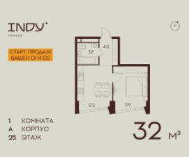 Продается уютная однокомнатная квартира на 25 этаже жилого комплекса Indy Towers. Вид из окон: на улицу. Срок сдачи: 4 кв. 2026 г.