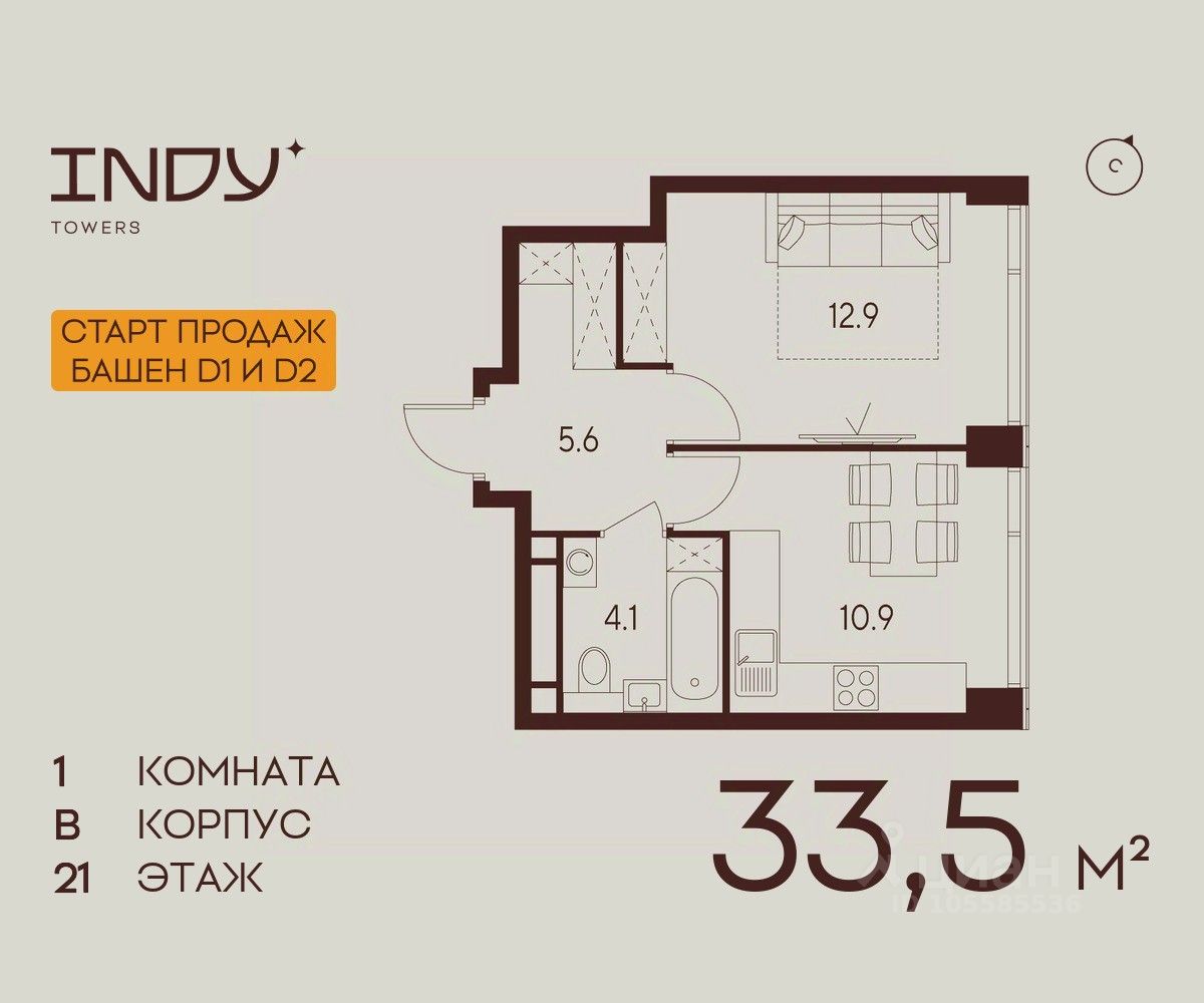 Продажа от застройщика. Продается уютная однокомнатная квартира на 21 этаже жилого комплекса Indy Towers. Вид из окон: во двор. Срок сдачи: 4 кв. 2026 г. Отделка: Квартиры продаются с отделкой WhiteBox. - Вам не придется заниматься черновыми работами. - Возможность реализовать любой дизайн-проект. Расположение: Комплекс расположен в Хорошевском районе Москвы, на улице Куусенина, в окружении почти 150 гектаров парков для прогулок и активного отдыха. Помимо этого, рядом с комплексом есть: - Детская международная академия тенниса - Ледовый спортивный комплекс ЦСКА - Футбольный стадион "ВЭБ-Арена" - Крупнейший в Европе торовый центр "Авиапарк" - Богатый выбор государственных и частных школ - 8 парков, окружающих комплекс Транспортная доступность: - 3 минут до метро Зорге - 2 минуты пешком до парка Березовая роща - 10 минут на машине до ТТК - 8 минут на машине до ТРЦ Авиапарк Внутренняя инфраструктура Indy Towers: - Кафе и продуктовые магазины - Тайский SPA - Фитнес зал - Комьюнити-зона - Детский клуб Аквилон KIDS - Детский сад Преимущества: - Технология энергоэффективности Termo-S, снижающая теплопотерю домов и позволяющую экономить на электроснабжении - Soundstop - технология дополнительной шумоизоляции на 39 дБ в квартирах с WhiteBox и чистовой отделкой - Система умного дома inHome 3.0 позволит контролировать коммунальные расходы, оплачивать счета и пользоваться услугами, не выходя из умного дома