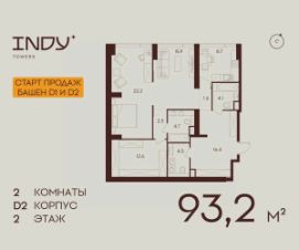 Продается просторная 2-комнатная квартира на 2 этаже жилого комплекса Indy Towers. Срок сдачи: 3 кв. 2029 г.