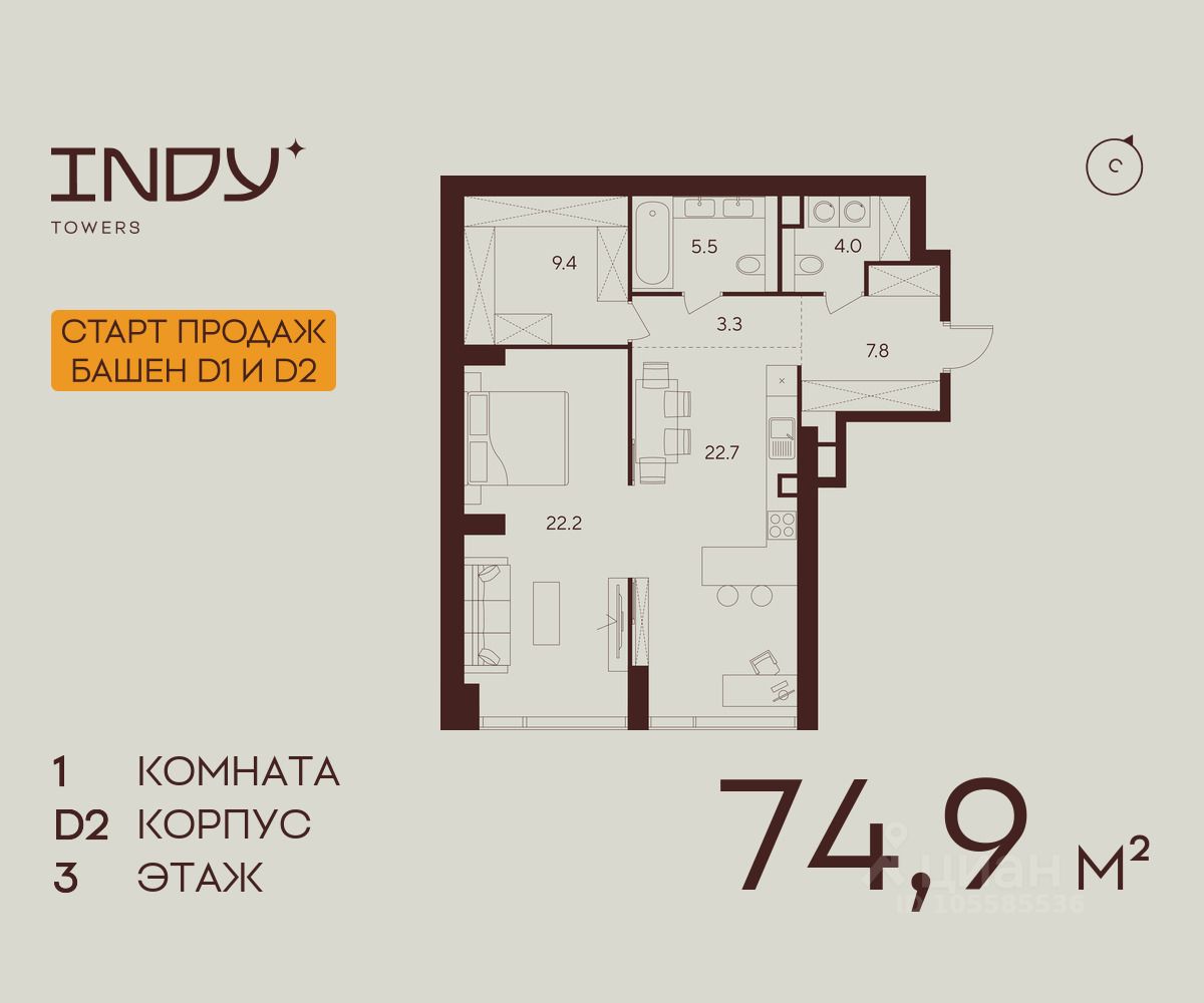 Продажа от застройщика. Продается уютная однокомнатная квартира на 3 этаже жилого комплекса Indy Towers. Срок сдачи: 3 кв. 2029 г. Отделка: Квартиры продаются с отделкой WhiteBox. - Вам не придется заниматься черновыми работами. - Возможность реализовать любой дизайн-проект. Расположение: Комплекс расположен в Хорошевском районе Москвы, на улице Куусенина, в окружении почти 150 гектаров парков для прогулок и активного отдыха. Помимо этого, рядом с комплексом есть: - Детская международная академия тенниса - Ледовый спортивный комплекс ЦСКА - Футбольный стадион "ВЭБ-Арена" - Крупнейший в Европе торовый центр "Авиапарк" - Богатый выбор государственных и частных школ - 8 парков, окружающих комплекс Транспортная доступность: - 3 минут до метро Зорге - 2 минуты пешком до парка Березовая роща - 10 минут на машине до ТТК - 8 минут на машине до ТРЦ Авиапарк Внутренняя инфраструктура Indy Towers: - Кафе и продуктовые магазины - Тайский SPA - Фитнес зал - Комьюнити-зона - Детский клуб Аквилон KIDS - Детский сад Преимущества: - Технология энергоэффективности Termo-S, снижающая теплопотерю домов и позволяющую экономить на электроснабжении - Soundstop - технология дополнительной шумоизоляции на 39 дБ в квартирах с WhiteBox и чистовой отделкой - Система умного дома inHome 3.0 позволит контролировать коммунальные расходы, оплачивать счета и пользоваться услугами, не выходя из умного дома