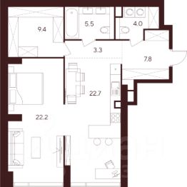 Жилая площадь22,2 м²