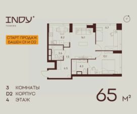 Продается просторная 3-комнатная квартира на 4 этаже жилого комплекса Indy Towers. Срок сдачи: 3 кв. 2029 г.