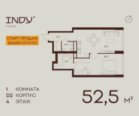 Продается уютная однокомнатная квартира на 4 этаже жилого комплекса Indy Towers. Срок сдачи: 3 кв. 2029 г.