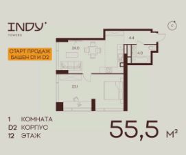Продается уютная однокомнатная квартира на 12 этаже жилого комплекса Indy Towers. Срок сдачи: 3 кв. 2029 г.