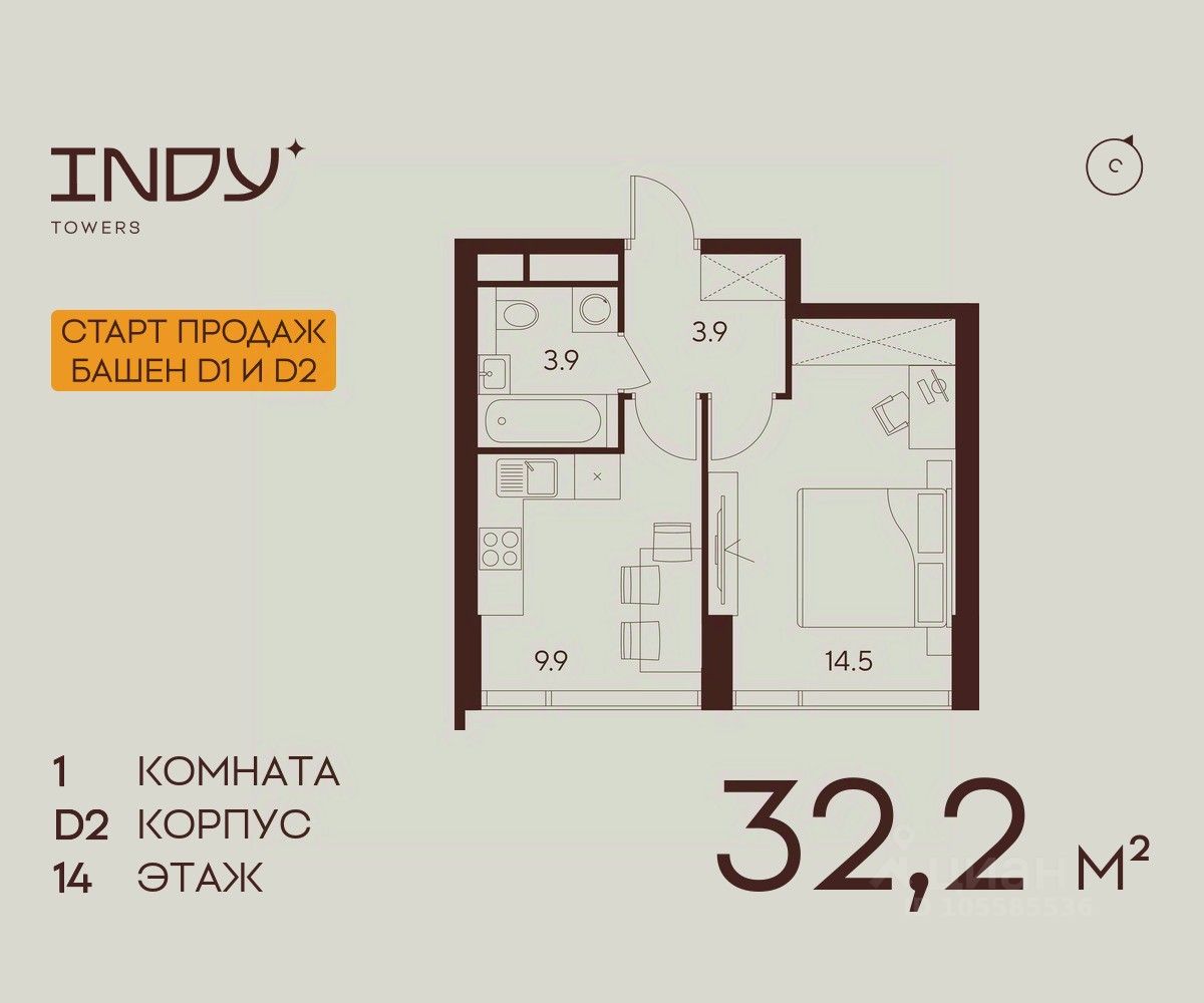 Продается уютная однокомнатная квартира на 14 этаже жилого комплекса Indy Towers. Срок сдачи: 3 кв. 2029 г.