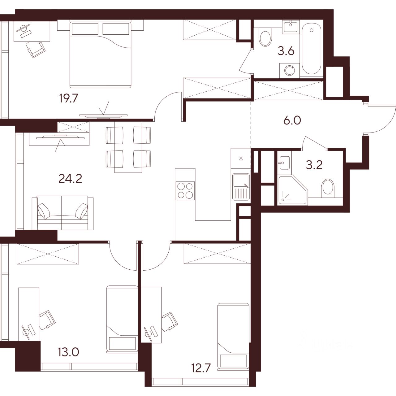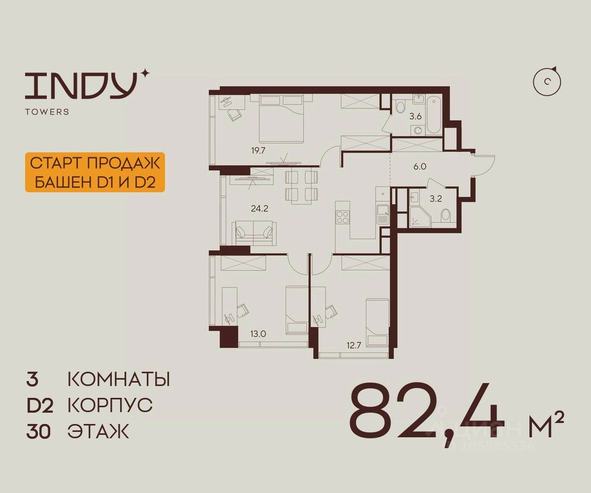 Продается просторная 3-комнатная квартира на 30 этаже жилого комплекса Indy Towers. Срок сдачи: 3 кв. 2029 г.