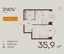 Продается уютная однокомнатная квартира на 15 этаже жилого комплекса Indy Towers. Вид из окон: на улицу. Срок сдачи: 4 кв. 2026 г.