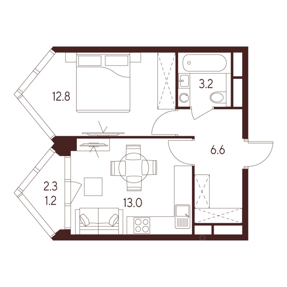 Квартира с лоджией.