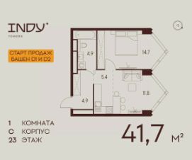 Продается уютная однокомнатная квартира на 23 этаже жилого комплекса Indy Towers. Вид из окон: на улицу. Срок сдачи: 4 кв. 2026 г.
