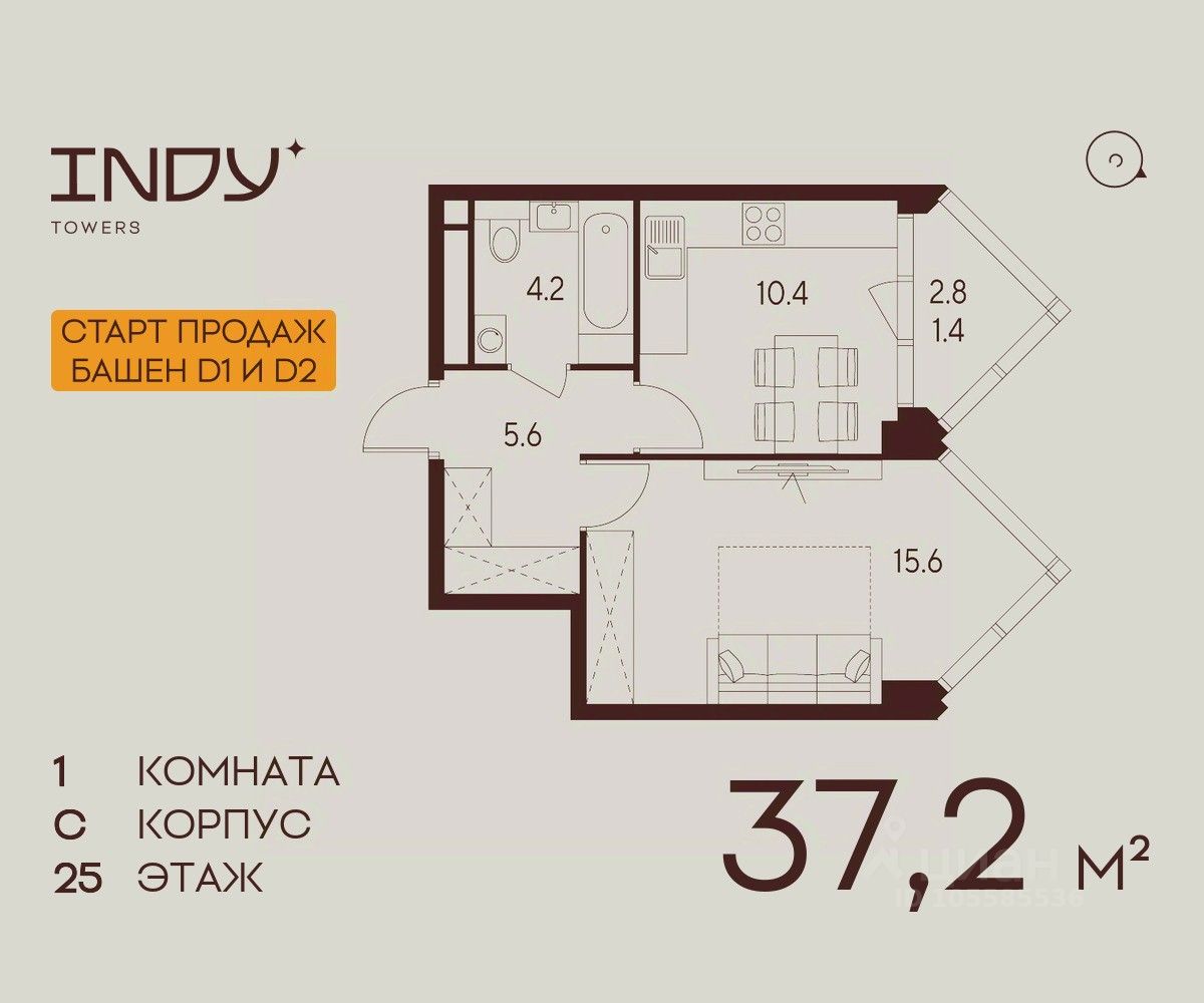 Продается уютная однокомнатная квартира на 25 этаже жилого комплекса Indy Towers. Вид из окон: на улицу. Срок сдачи: 4 кв. 2026 г.