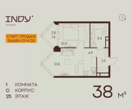 Продается уютная однокомнатная квартира на 25 этаже жилого комплекса Indy Towers. Вид из окон: во двор. Срок сдачи: 4 кв. 2026 г.