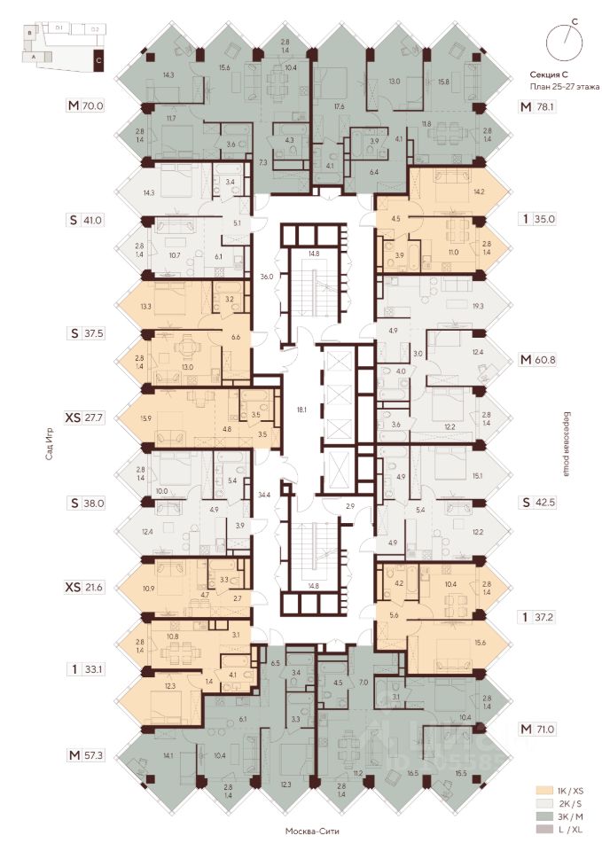 Продается просторная студия на 25 этаже жилого комплекса Indy Towers. Вид из окон: во двор. Срок сдачи: 4 кв. 2026 г.