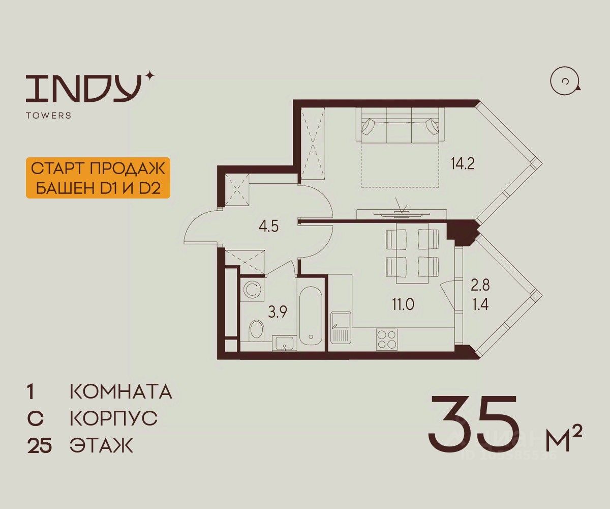 Продажа от застройщика. Продается уютная однокомнатная квартира на 25 этаже жилого комплекса Indy Towers. Вид из окон: на улицу. Срок сдачи: 4 кв. 2026 г. Квартира с лоджией. Отделка: Квартиры продаются с отделкой WhiteBox. - Вам не придется заниматься черновыми работами. - Возможность реализовать любой дизайн-проект. Расположение: Комплекс расположен в Хорошевском районе Москвы, на улице Куусенина, в окружении почти 150 гектаров парков для прогулок и активного отдыха. Помимо этого, рядом с комплексом есть: - Детская международная академия тенниса - Ледовый спортивный комплекс ЦСКА - Футбольный стадион "ВЭБ-Арена" - Крупнейший в Европе торовый центр "Авиапарк" - Богатый выбор государственных и частных школ - 8 парков, окружающих комплекс Транспортная доступность: - 3 минут до метро Зорге - 2 минуты пешком до парка Березовая роща - 10 минут на машине до ТТК - 8 минут на машине до ТРЦ Авиапарк Внутренняя инфраструктура Indy Towers: - Кафе и продуктовые магазины - Тайский SPA - Фитнес зал - Комьюнити-зона - Детский клуб Аквилон KIDS - Детский сад Преимущества: - Технология энергоэффективности Termo-S, снижающая теплопотерю домов и позволяющую экономить на электроснабжении - Soundstop - технология дополнительной шумоизоляции на 39 дБ в квартирах с WhiteBox и чистовой отделкой - Система умного дома inHome 3.0 позволит контролировать коммунальные расходы, оплачивать счета и пользоваться услугами, не выходя из умного дома