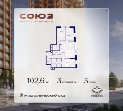 Продаётся 3-комнатная квартира площадью 102.6 м² на 3 этаже в Жилом Комплексе "Союз".