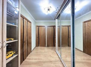 В квартире остается кухонный гарнитур и спальный гарнитур, встроенные шкафы в прихожей, вся мебель хорошего качества и в единой стилистике.