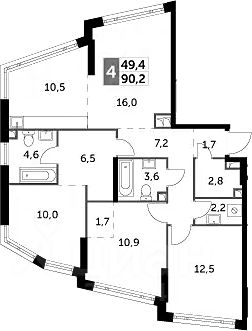 Евро-4к квартира в ЖК Роттердам площадью 90.2м. 3 изолированные комнаты, кухня-гостиная. отделка White Box.