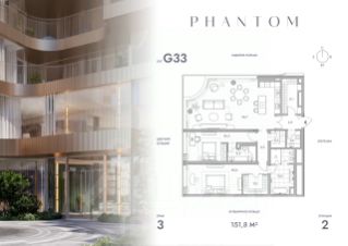 Представляем просторную 2-комнатную квартиру на 3 этаже Резиденций PHANTOM. Общая площадь лота составляет 151,8 кв.м.
