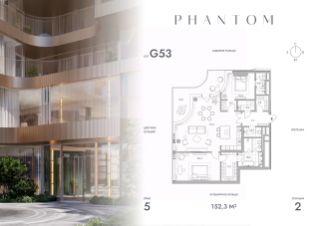 Представляем просторную 2-комнатную квартиру на 5 этаже Резиденций PHANTOM. Общая площадь лота составляет 152,3 кв.м.