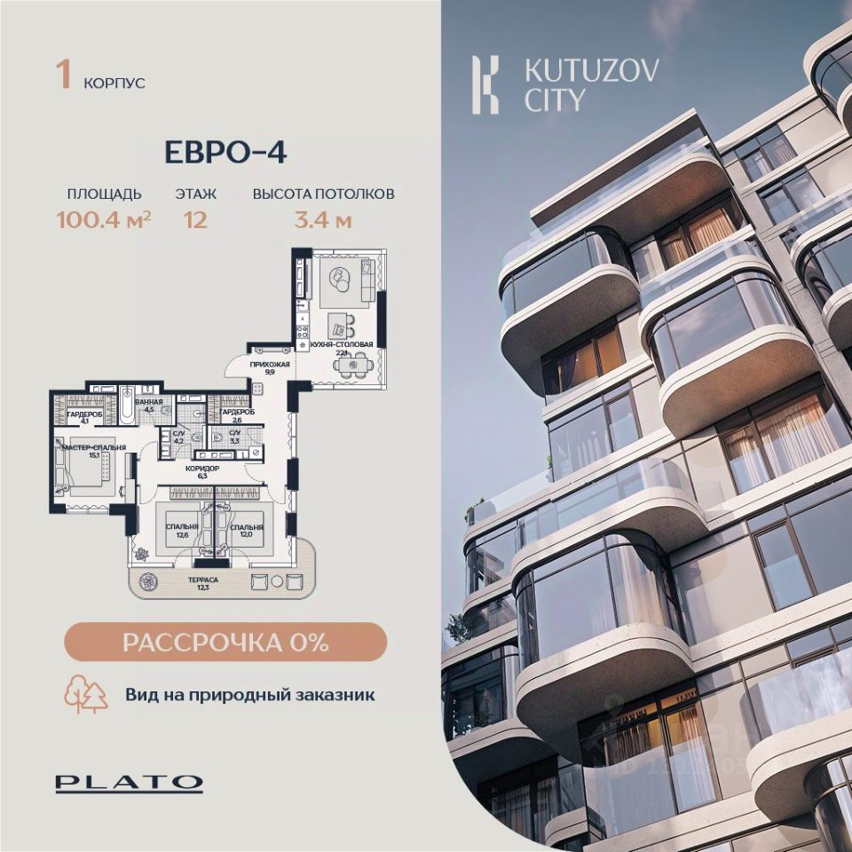 Продается просторная квартира площадью 100,4 м² в башне "Гармония" клубного дома "Кутузов Сити".