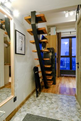 Апартаменты поделены на 2 двухуровневые и 1 трехуровневую студии. Это 3 отдельные студии с отдельными договорами аренды на каждую. Каждая студия имеет свой собственный отдельный вход, свою кухню и санузел. При желании можно сдавать посуточно, и тогда доходность будет выше.