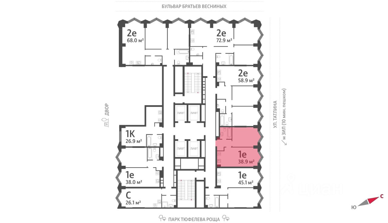 Продаётся 1-комнатная квартира в доме ЗИЛАРТ СПАРК общей площадью 38.9 кв. метров на 4 этаже.
