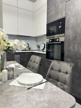 Ремонт: Качественный, выполнен с использованием хороших материалов. Вся мебель (встроенная) и техника подбирались для себя, на заказ.