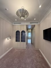 На втором уровне расположены две детские комнаты с гардеробными, отдельный санузел с окном и гардеробной, а также родительская спальня с собственным санузлом и захватывающими видами на Москву и Кремль. Здесь пространство и стиль сочетаются в каждой детали, создавая атмосферу уюта и спокойствия.