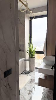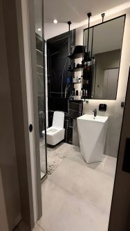 Данная квартира сделана в полном соответствии с наличием в ней мокрых зон и разрешенного планирования вокруг них. Проведена качественная электрика (в тч автоматы бренда ABB), установлена качественная сантехника, при ремонте использовались только качественные материалы. По периметру квартиры проложена шумоизолция!! Для отделки ванных комнат использовался испанский и российский керамогранит, для окраски стен использовалась премиальные российские декоративная и интерьерная краски. Вся мебель в квартире изготовлена на заказ. На кухне установлена техника испанского бренда TEKA и швейцарского бренда FRANKE, также в кухонной зоне установлен измельчитель отходов и накопительная система фильтрации воды Барьер. Кухонные фасады изготовлены их итальянского материала Fenix, которые не боится царапин, пятен и иных повреждений. Постирочная зона оснащена стиральной и сушильной машинами бренда Haier. в Обеих комнатах установлены кондиционеры бренда LG.