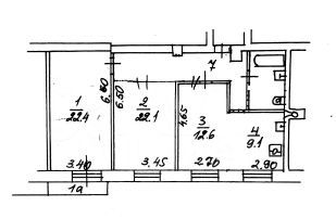Светлая квартира с комфортной планировкой: две изолированные комнаты (22.1 + 22.4 кв. М.).