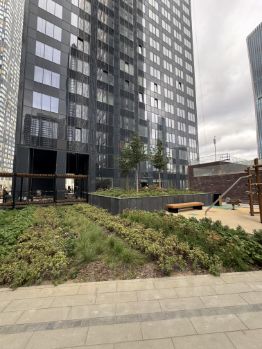 ЖК имеет огороженную, охраняемую территория, двор без машин, во дворах оборудованы детские и спортивные площадки, собственный прогулочный бульвар с магазинами, ресторанами и кафе.