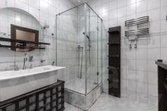 - просторная ванная комната с душевой кабиной и местами для хранения;