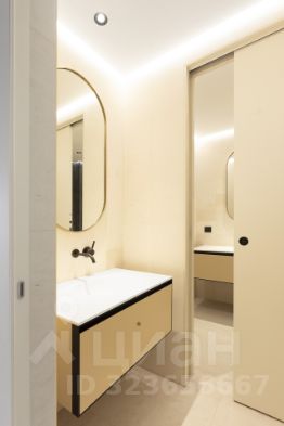 В отделке использованы натуральный камень, сантехника Dornbracht и Catalano, двери Barausse.