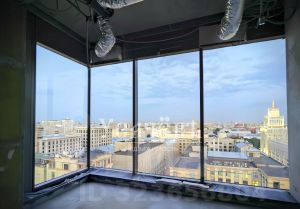 ХАРАКТЕРИСТИКИ: Общая площадь: 98,4 м². Можно спланировать: кухню-гостиную-столовую, мастер-спальню с просторной гардеробной и собственным с/у, гостевой с/у, гардеробную, постирочную, холл. Панорамное остекление. Виды на исторический центр Москвы.