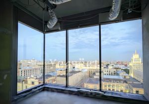 Общая площадь: 98,8 м². Можно спланировать: кухню-гостиную-столовую, мастер-спальню с просторной гардеробной и собственным с/у, гостевой с/у, гардеробную, постирочную, холл. Панорамное остекление. Восхитительные виды на исторический центр Москвы.