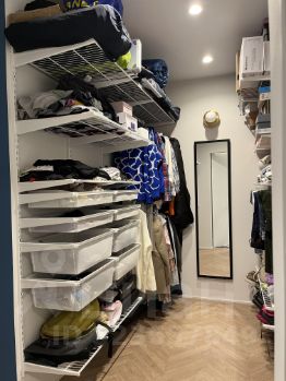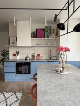 - По всей квартире сделана встроенная мебель, на кухне дизайнерские стулья DELO и удобный угловой диван.