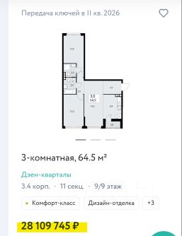64,9 м²