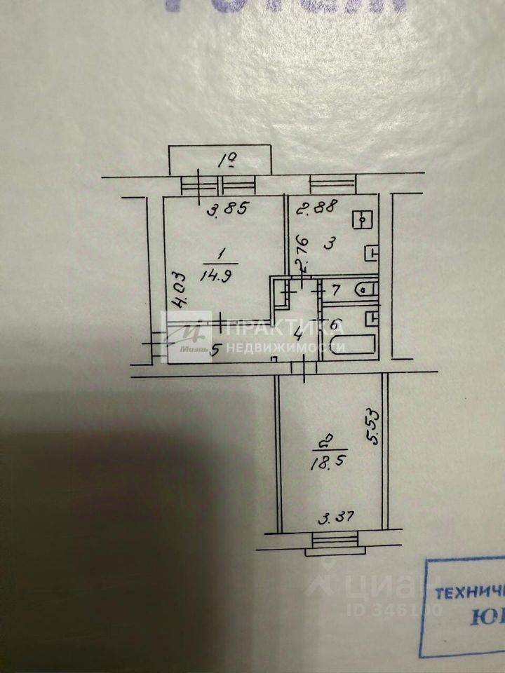Общая площадь квартиры составляет 54,5 кв. м, из которых 33,4 кв. м — жилая площадь, 7,9 кв. м — кухня. Высота потолков — 3 метра, что создаёт ощущение простора и свободы. Изолированные комнаты (18,5 кв. м и 14,9 кв. м) и раздельный санузел обеспечивают комфорт и удобство для жизни.
