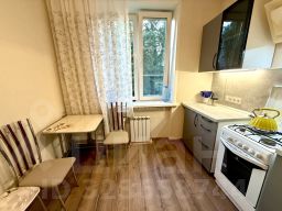 В квартире сделан евроремонт, что позволит сразу заселиться без дополнительных вложений. Расположение комнат на разные стороны дома обеспечивает хорошую освещённость и проветриваемость. Окна выходят на улицу, которую отделяет от дома полоса из взрослых деревьев и во двор, а балкон добавляет уюта и функциональности.