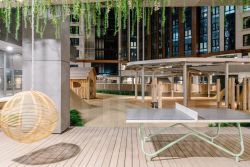 В ЖК продуманная, богатая инфраструктура из трех зон. В основной входной группе сконцентрированы все блага современного мегаполиса: супермаркет, ресторан, фитнес-клуб, аптеки, салоны к
