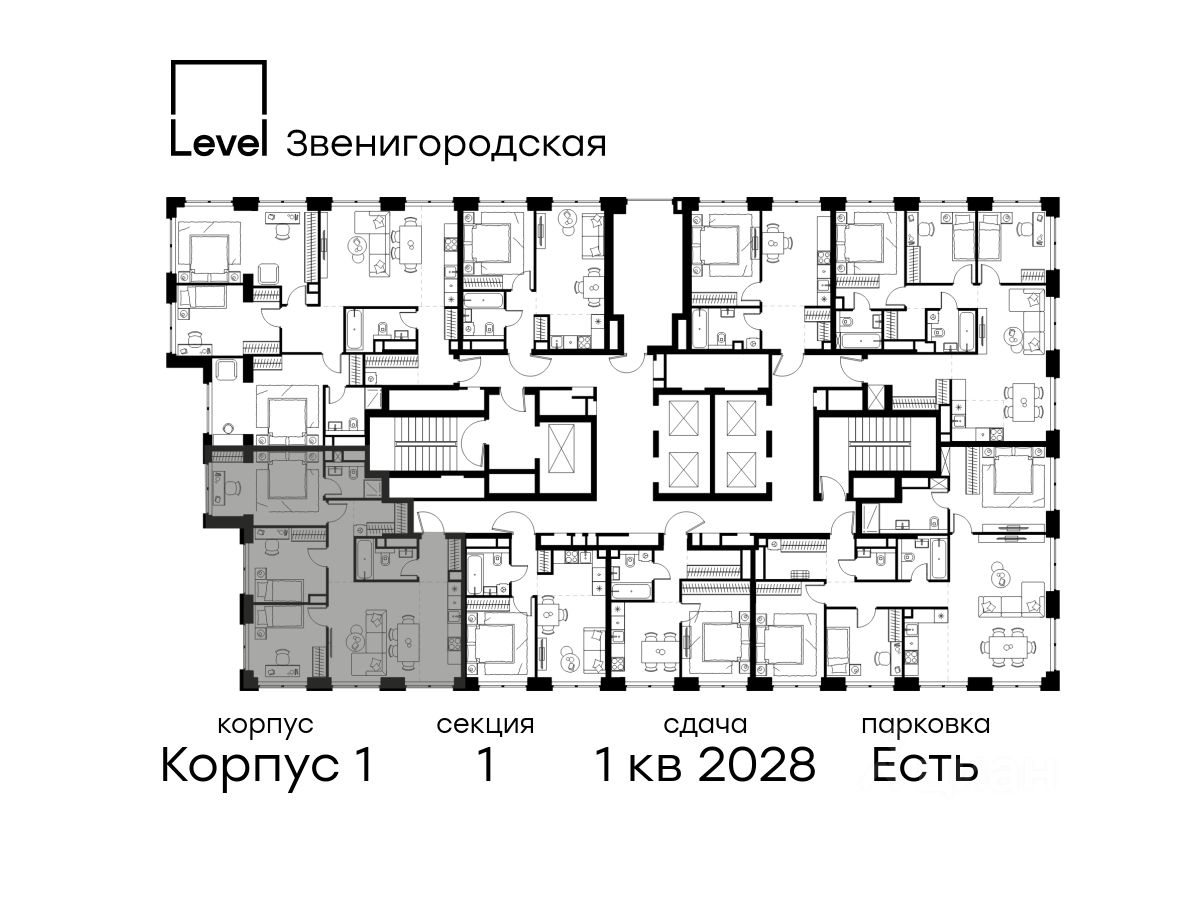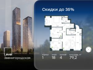 В жилом квартале продаётся 4-комнатная квартира площадью 79.20 кв.м white box. Квартира расположена на 18 этаже 48 этажного корпуса 1 в жилом комплексе комфорт класса Level Звенигородская (компания Level Group/Левел групп).